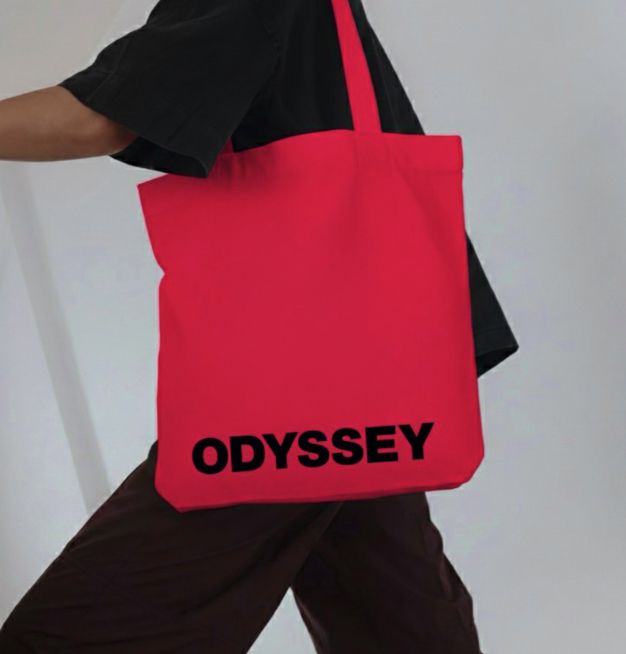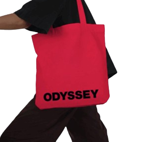 RED TOTE BAG WITH ODYSSEY LOGO IN BLACK